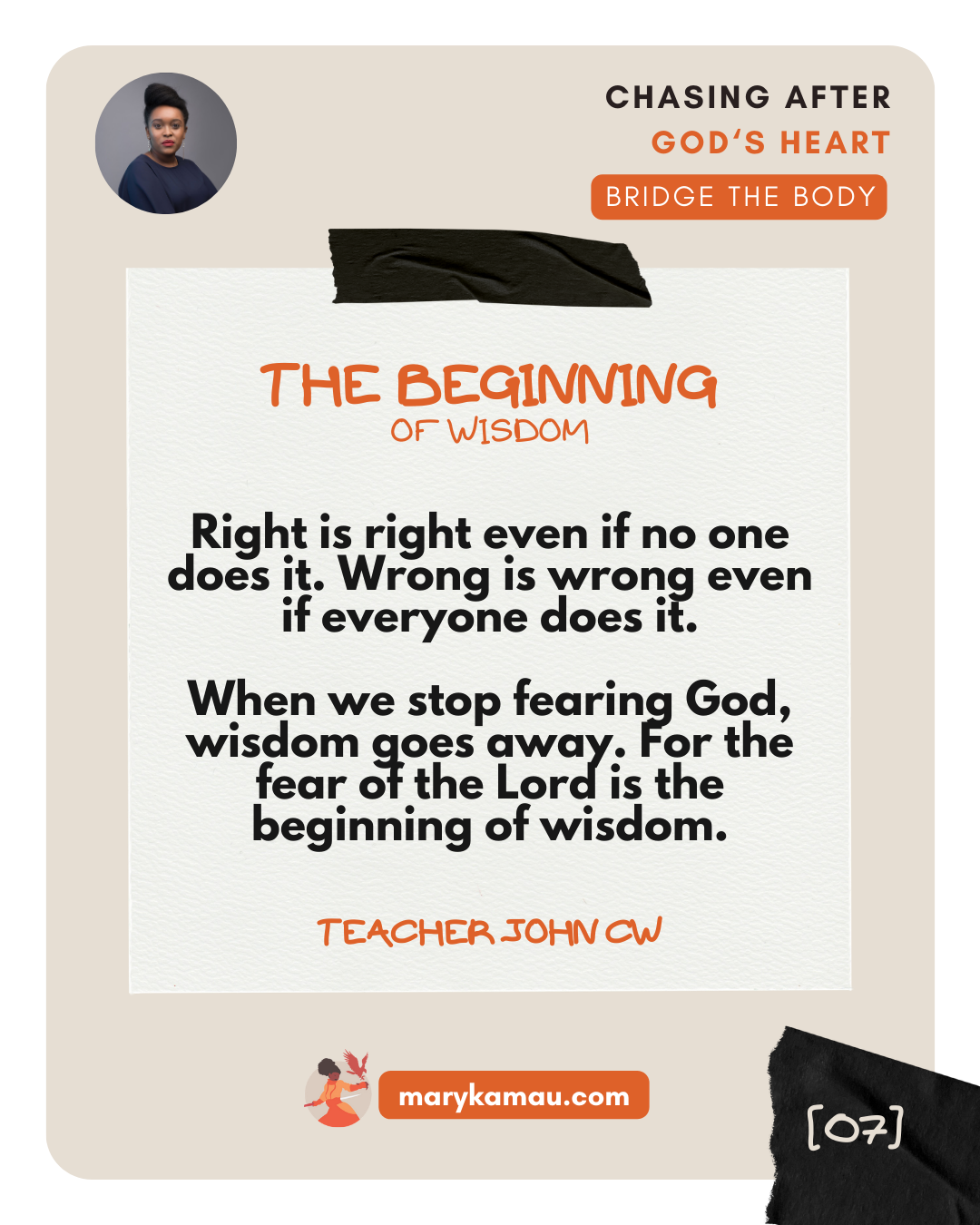 THE BEGINNING OF WISDOM | TEACHER JOHN CW | BRIDGE THE BODY | MARY KAMAU
